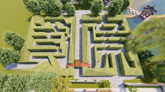 (1)貪廉字迷宮。把“貪、廉”二字做成植物迷宮。以迷宮游樂方式,來體現(xiàn)廉政文化主題。