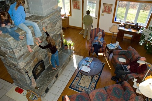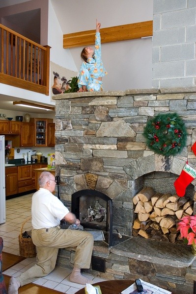 孩子們冷得都坐在壁爐上了