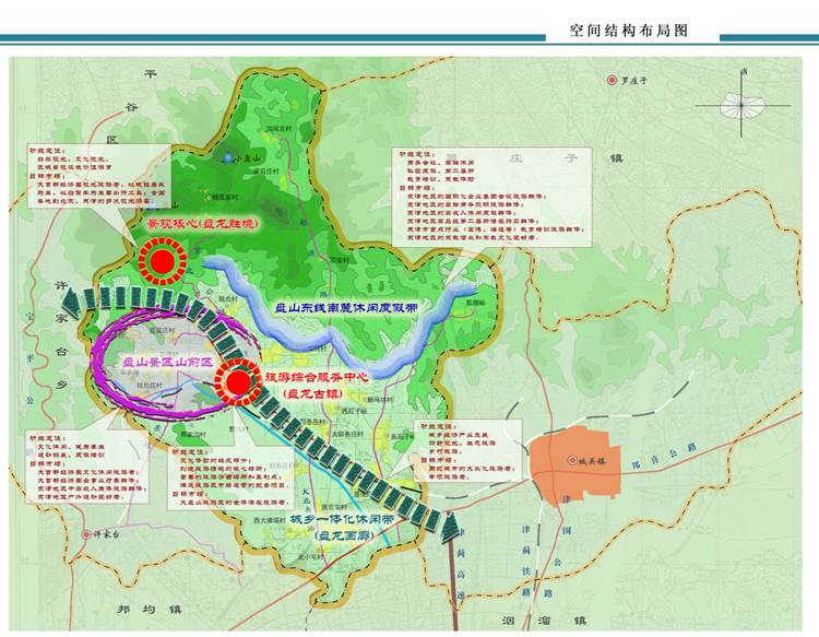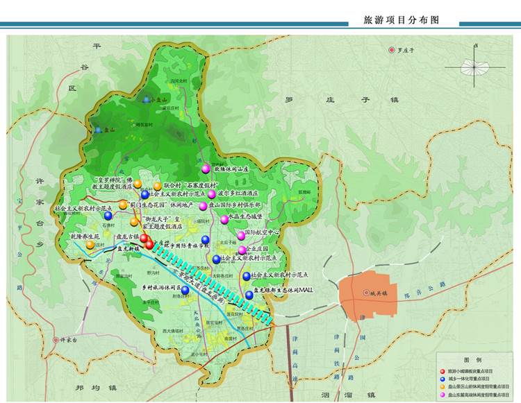 官莊休閑度假區(qū)的旅游產(chǎn)業(yè)布局,是在對(duì)盤(pán)山歷史文化延續(xù)、遺址遺跡保護(hù)的前提下,以當(dāng)今和未來(lái)旅游市場(chǎng)需求為指導(dǎo),同時(shí)將與旅游開(kāi)發(fā)、小城鎮(zhèn)建設(shè)、社會(huì)主義新農(nóng)村建設(shè)緊密結(jié)合,實(shí)現(xiàn)自然山水觀(guān)光、歷史遺址恢復(fù)、文化旅游、休閑度假、鎮(zhèn)區(qū)環(huán)境建設(shè)與土地開(kāi)發(fā)的復(fù)合功能,創(chuàng)造綜合效益最大化。