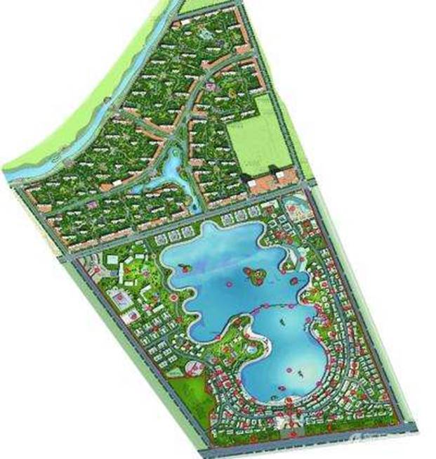 采用最典型旅游地產(chǎn)規(guī)劃布局模式。中間部分是旅游區(qū),外圍部分是配套地產(chǎn)(一期規(guī)劃中,外圍用地主要在北側(cè),東西側(cè)用地尚處與政府協(xié)商中,納入二期)。