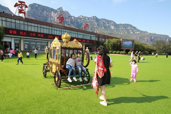 云臺(tái)山景區(qū)對(duì)百家?guī)r綜合服務(wù)中心進(jìn)行了改造提升,不僅在山門廣場(chǎng)鋪設(shè)了9000平方米的人工草坪,還增加了風(fēng)車擺件、噴泉、卡通造型等,儼然變成了一個(gè)歡樂的夢(mèng)幻樂園。
