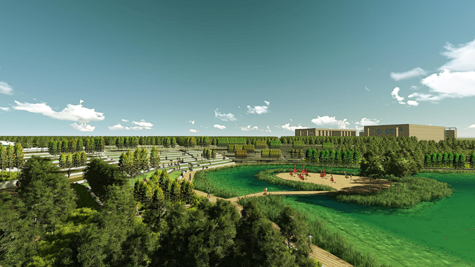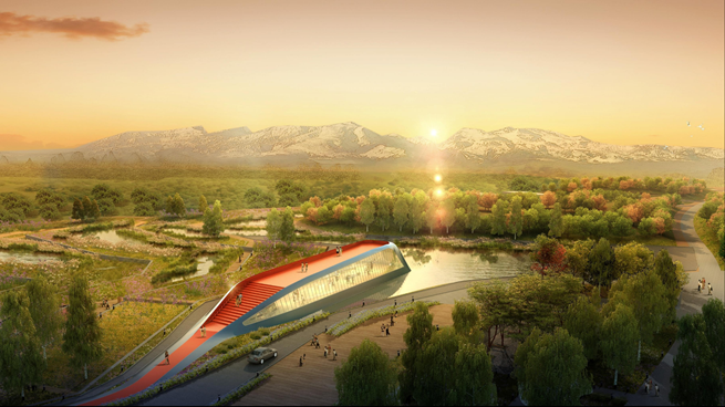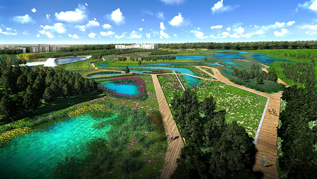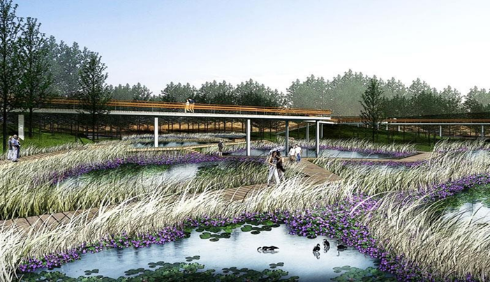 設(shè)計以最小干預(yù)為原則,采用整體保護、邊緣利用 的開發(fā)模式,集中力量建設(shè)城市邊緣的生態(tài)緩沖區(qū)。 打造一個“整體綠、局部精”的國家級濕地公園。