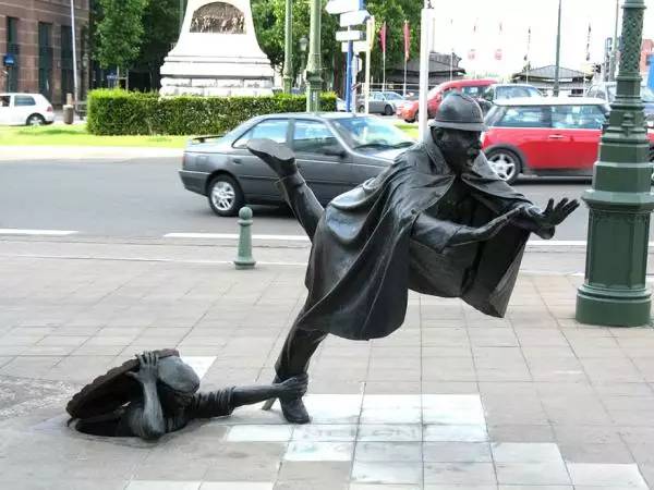 Tom Frantzen于1985年創(chuàng)作的《捉弄警察的叛逆少年》如今已經成為布魯塞爾必看的街頭景觀之一。一位正在巡視的警察被一個藏在下水道里的男童突然抓住腳踝,藝術家將這一刻凝固起來,為街頭的游客們活靈活現地再現了出來。
