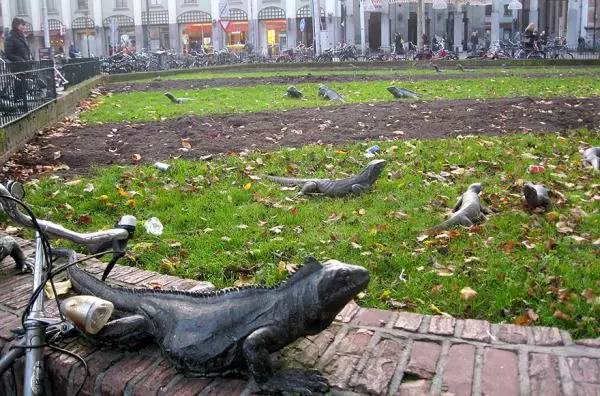 《鬣蜥公園》已經成了阿姆斯特丹著名的一景,世界各地的人都前來觀賞這些靜止的鬣蜥。鬣蜥的真身雖然難以見到,但是這里能見到大量的銅鬣蜥,也是一種別致的景象。