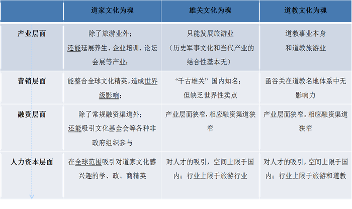 在該項(xiàng)目的道教、道家、名關(guān)三大文脈中,我們力排眾議選取“道家文化”作為文創(chuàng)園區(qū)的開發(fā)主題定位。為什么呢?也正是因?yàn)榈兰椅幕黝},從產(chǎn)業(yè)規(guī)劃、到營(yíng)銷造勢(shì)、到招商渠道,具備更強(qiáng)大的主題貫穿性,帶動(dòng)性,能使得項(xiàng)目迎刃而解: