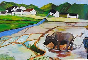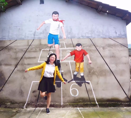 部分建成的村落懷舊墻畫