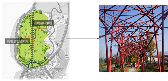 (1)重點項目是“荷塘景觀攝影廊道”。配套項目有“荷塘趣味索橋”
