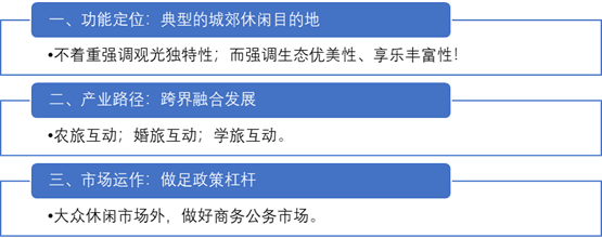 作為一個典型縣城近郊田園綜合體規(guī)劃項目。策劃定位主打本地化休閑度假,以及婚慶、兒童研學(xué)等“旅游+“產(chǎn)業(yè);所以觀光產(chǎn)品策劃并沒有作為重點;此外作為鄉(xiāng)村旅游扶貧點,該村還有較好的政策扶持,因此我們策劃把這個杠桿做足,農(nóng)副特產(chǎn)加工銷售也作為一項重要規(guī)劃。
