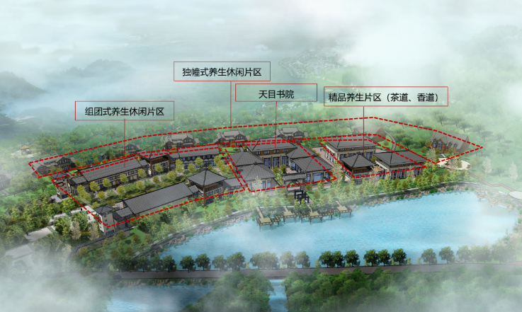 一山:天目山; 一湖:運(yùn)動(dòng)湖; 一鎮(zhèn):休閑鎮(zhèn); 一廊:景觀廊