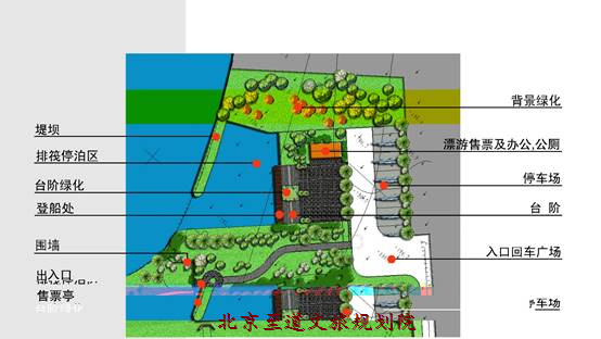 根據(jù)葉坪舊址區(qū)規(guī)劃框架,結(jié)合游客游程需求,在景區(qū)南側(cè)安排了一處公共停車場,距離主干道206國道20米。另外一處在貴賓通道的盡頭。第三處在漂游碼頭。